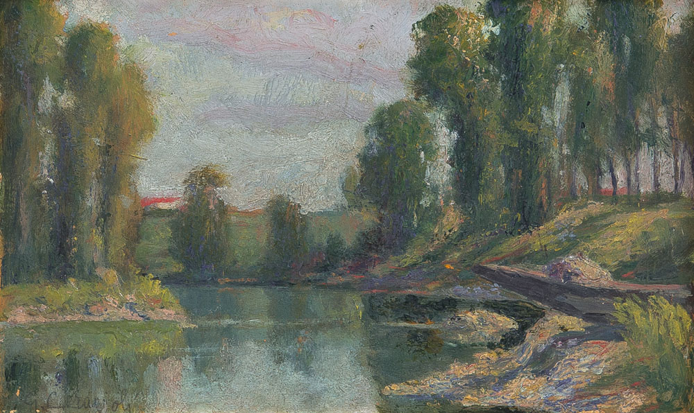 olio su cartone cm. 14,2x22, firma in basso a sinistra, firma e anno al retro.