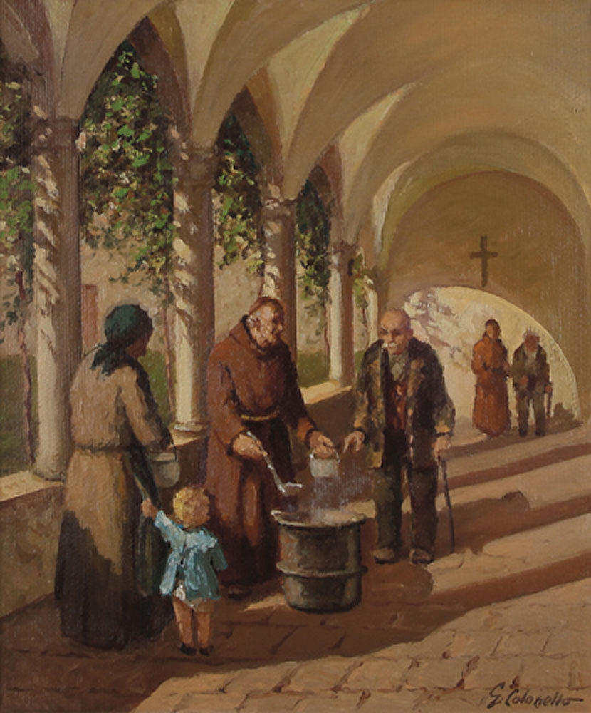 COLONELLO GIUSEPPE Udine 1903 - Aosta 1977La mensa dei poveriolio su tela cm....