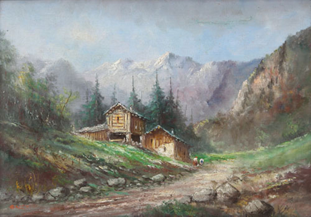 olio su tela rintelata cm. 50x70, firma in basso a sinistra, presenta un restauro visibile in alto al centro.