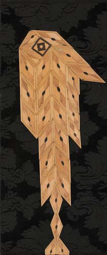 ENRICO BAJ Milano 31/10/1924 - Varese 15/06/2003 Profilo d'aristocratico, 1961 ciliegio intarsiato e tessuto su tavola cm. 58x24, firma in basso al centro, firma e anno al retro, pubblicato sul "Catalogo Generale Bolaffi delle opere di Baj", pagina 128 al numero 859.