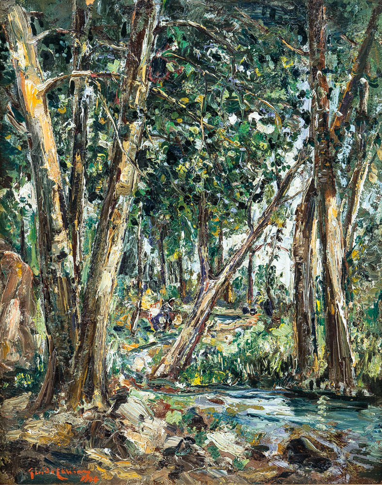 CASCIARO GUIDO Napoli 1900 - 1963Sottobosco, 1944olio su tavola cm. 31x24,5;...