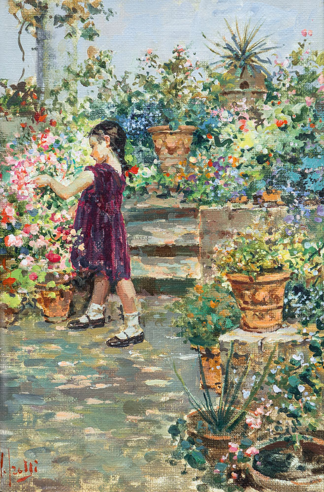 IROLLI VINCENZO Napoli 30/09/1860 - 27/11/1942Bambina tra i fioriolio su tela...