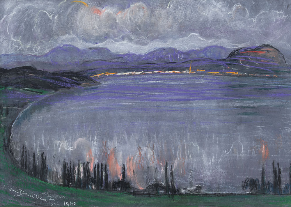 pastelli su cartone cm. 50x75, firma e anno in basso a sinistra, etichetta e timbro in ceralacca del Comune di Verona Galleria D'Arte Moderna dove l'opera è stata esposta.