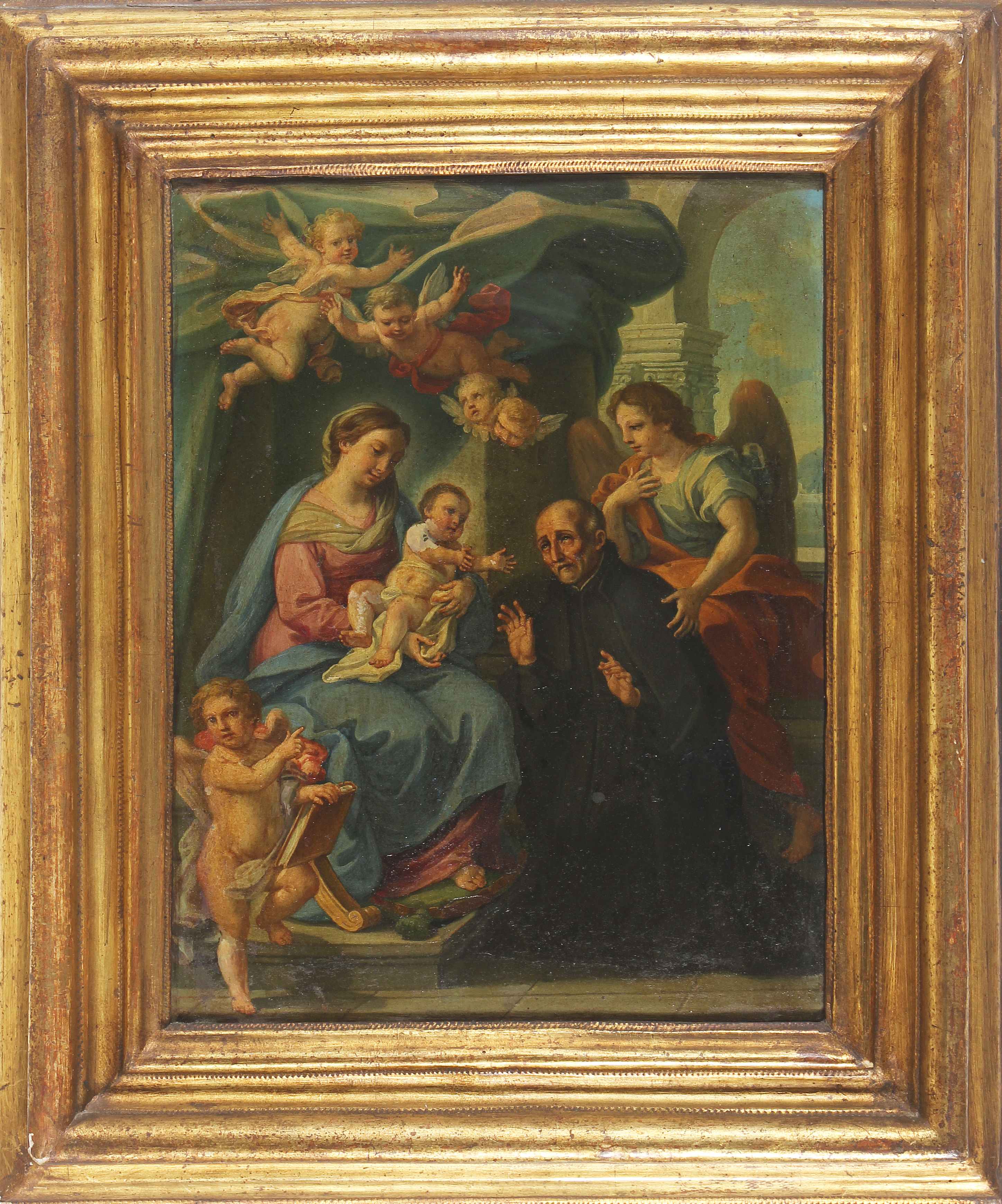 ARTISTA GENOVESE DEL XVII SECOLO Madonna con bambino e angeli. Olio su rame....