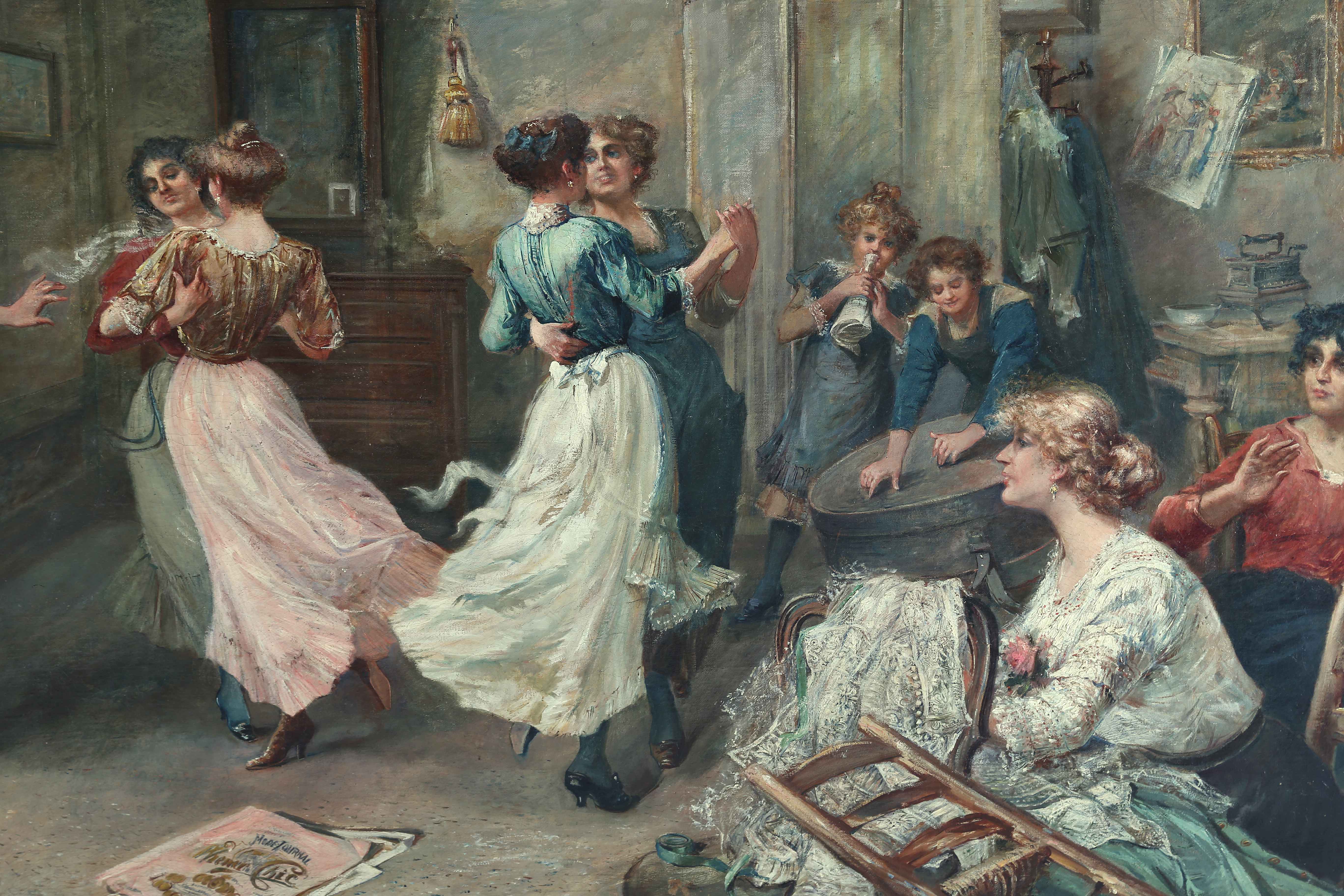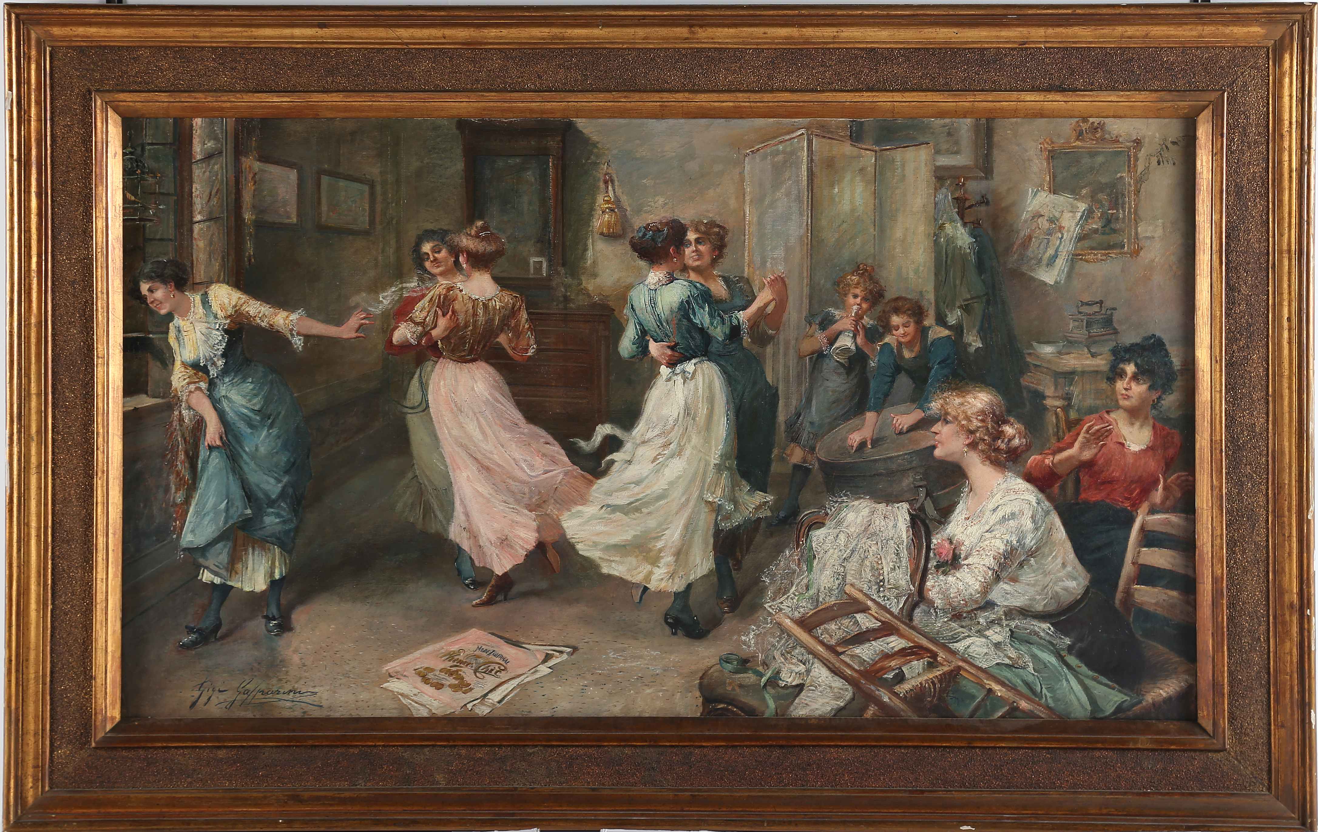 GASPARINI LUIGI (n. 1865) Prove di ballo. Olio su tela . Cm 180,00 x 100,00....