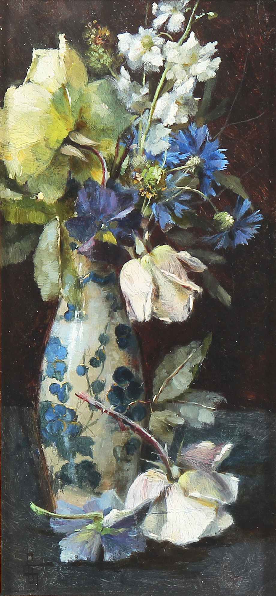 ARTISTA DEL XIX SECOLO Fiori. Olio su tavola. Cm 15,00 x 30,00. Firmato in basso a sinistra G.S. XIX CENTURY ARTIST Flowers. Oil on panel Signed G.S. on lower left. 15,00 x 30,00 cm.