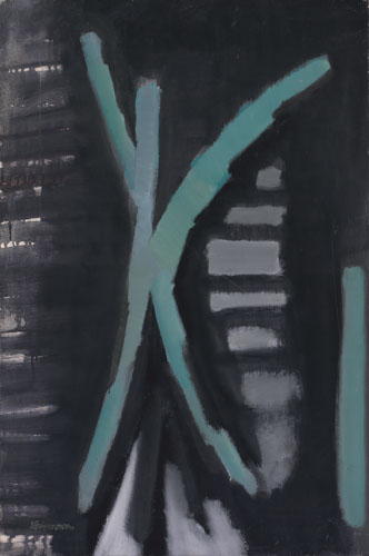 YEHUDA NEIMAN 1931 Composition, 1957 olio su tela cm. 81x54, firma in basso a...