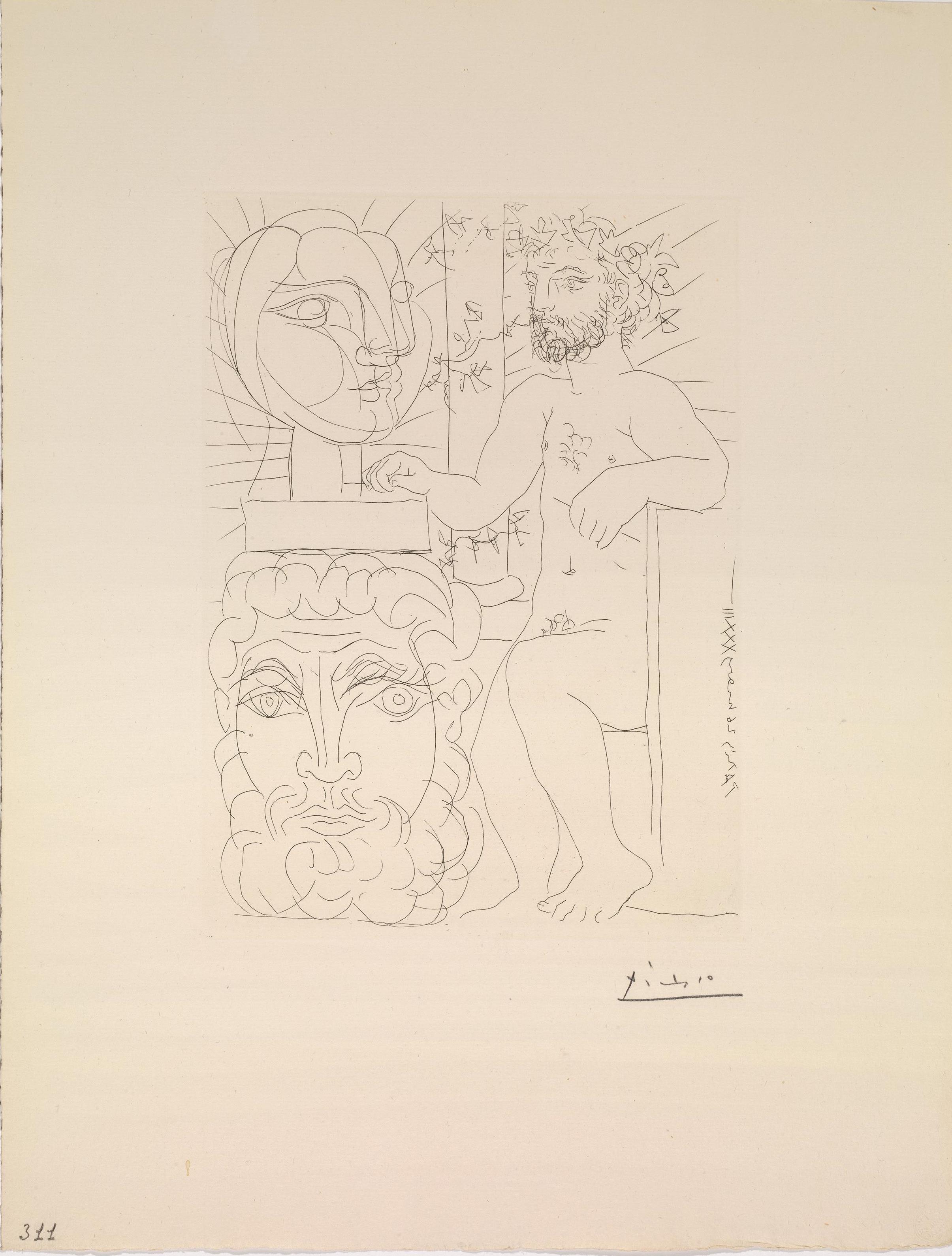 Pablo Picasso (Malaga 1881 Mougins 1973) SCULPTEUR ET DEUX T SCULPTÉ...