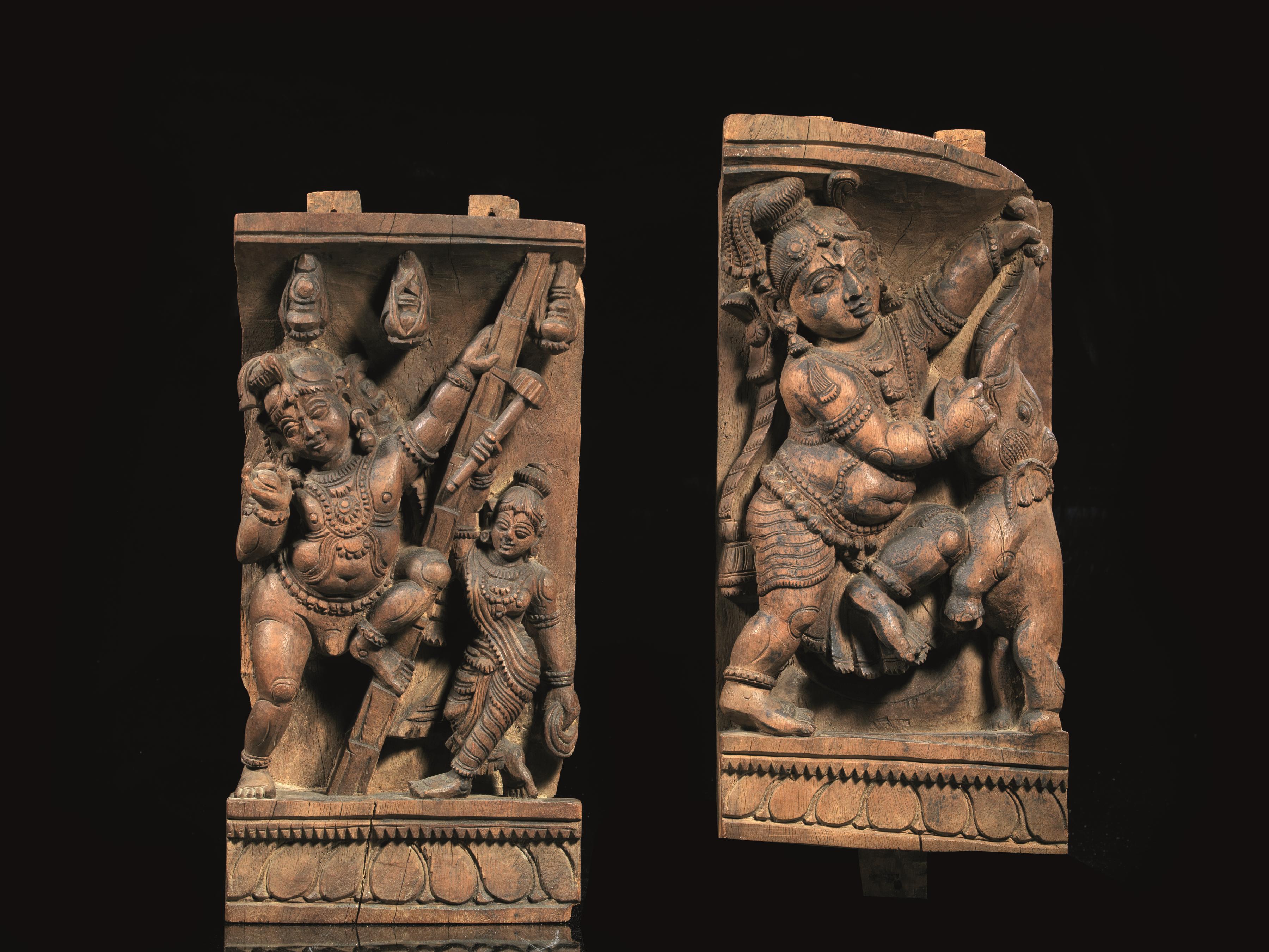 SCULTURE, ARTE INDIANA, SECC. XIX-XX Legno intagliato raffigurante rispet...
