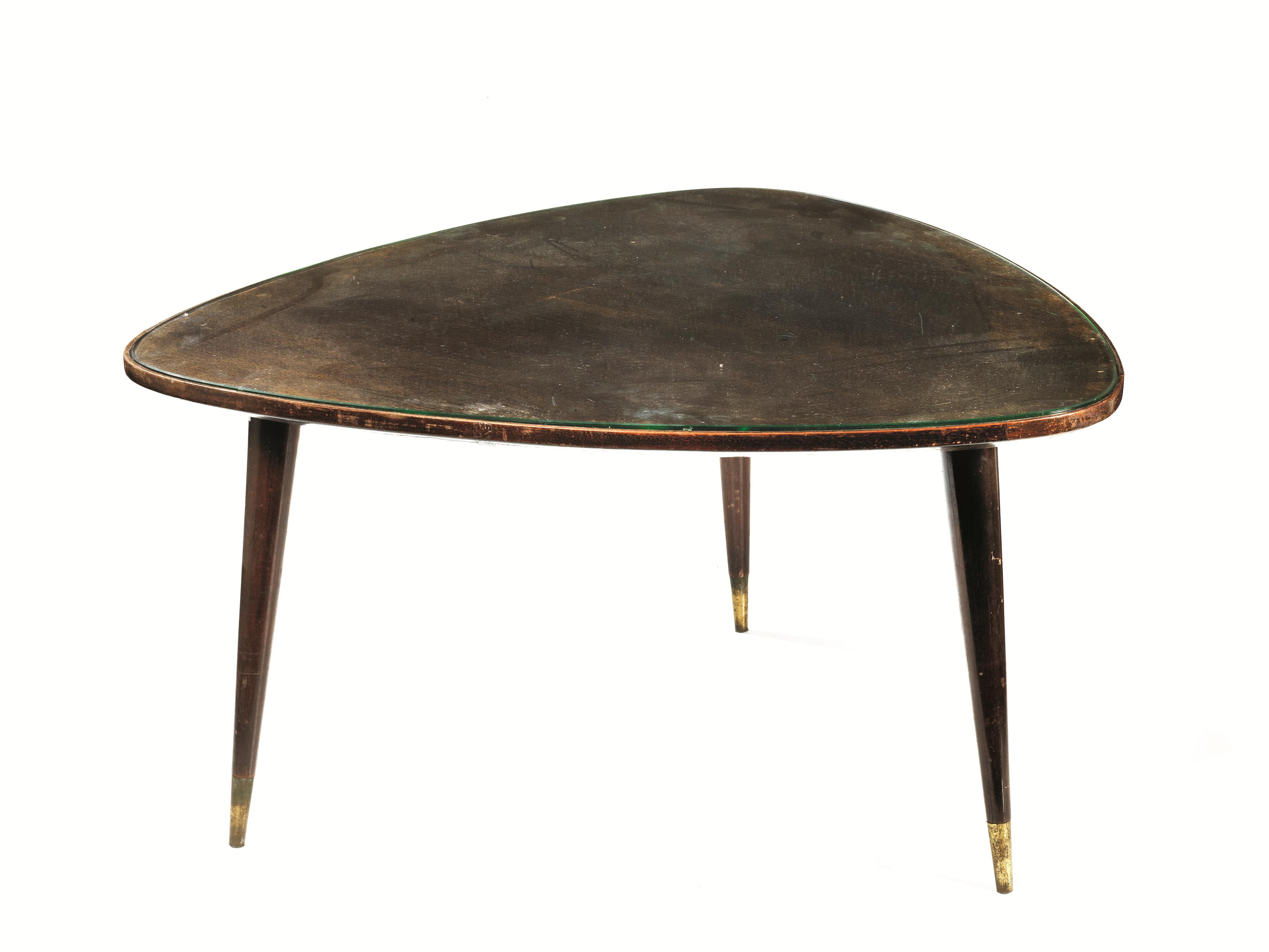 struttura in mogano, piano di forma triangolare arrotondata protetto da
