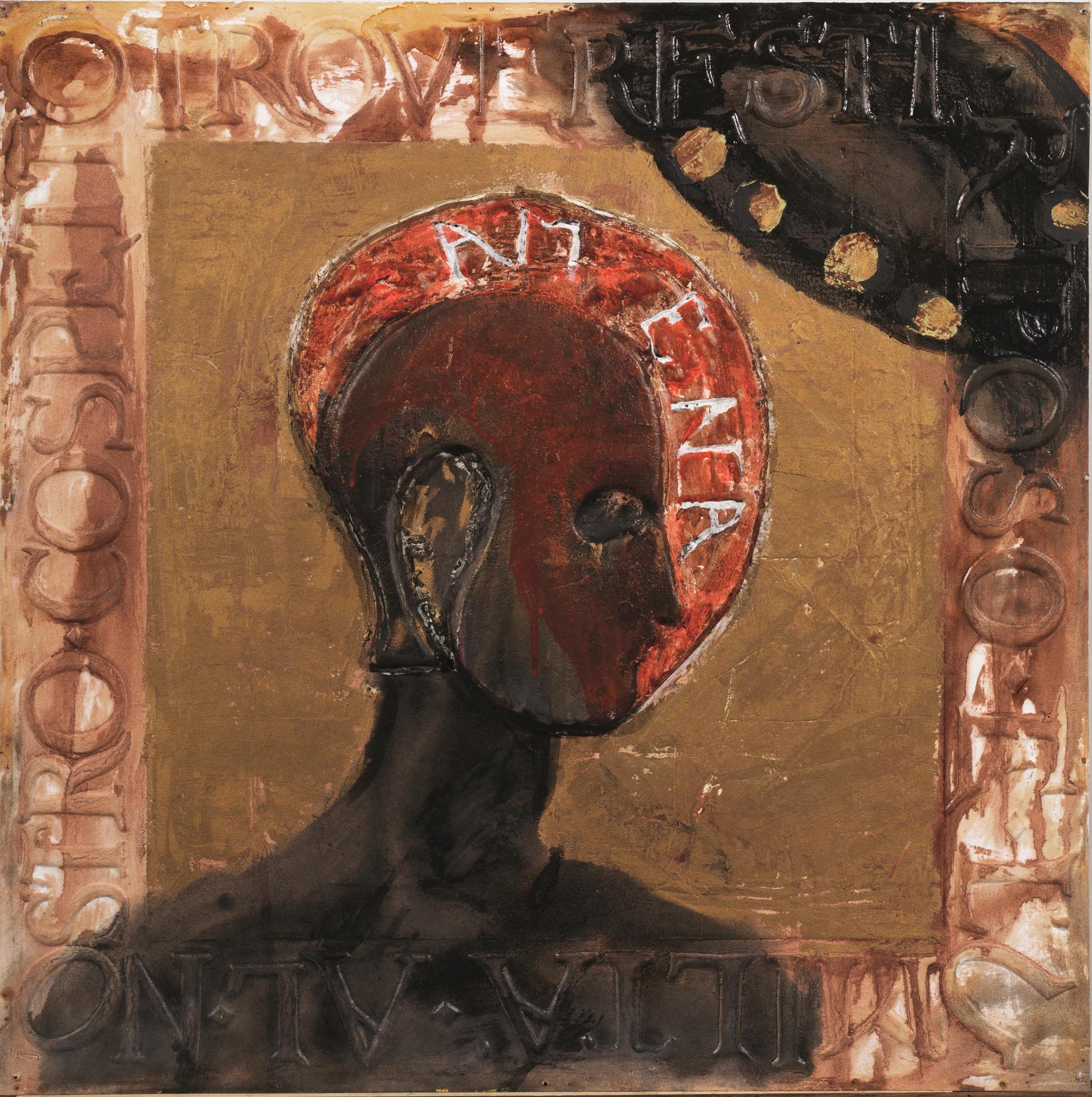 olio e tecnica mista su cartone calcografato, cm 57x57