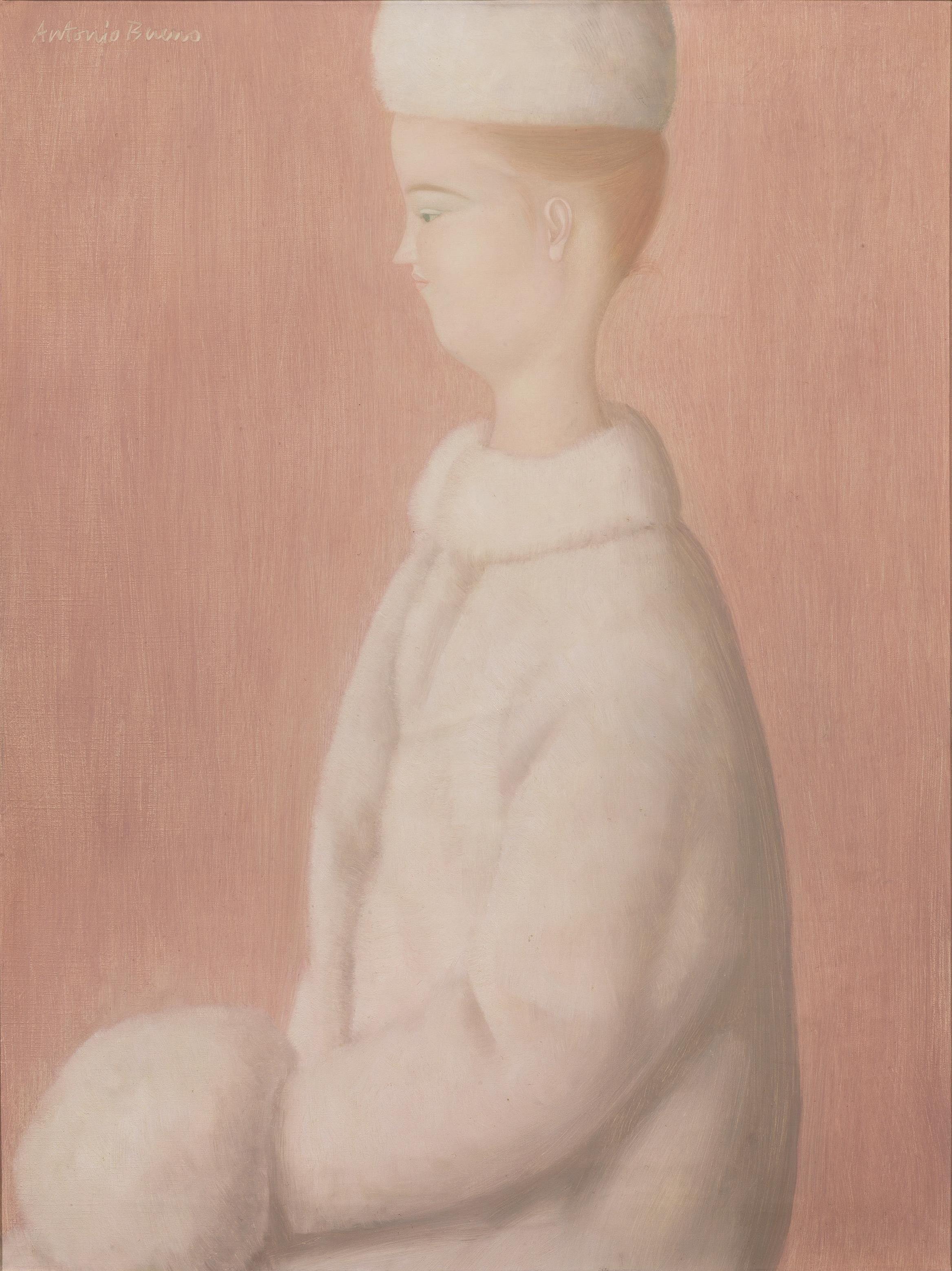 Antonio Bueno (Berlino 1918 - Fiesole 1984) DONNA IN PELLICCIA olio su tela,...