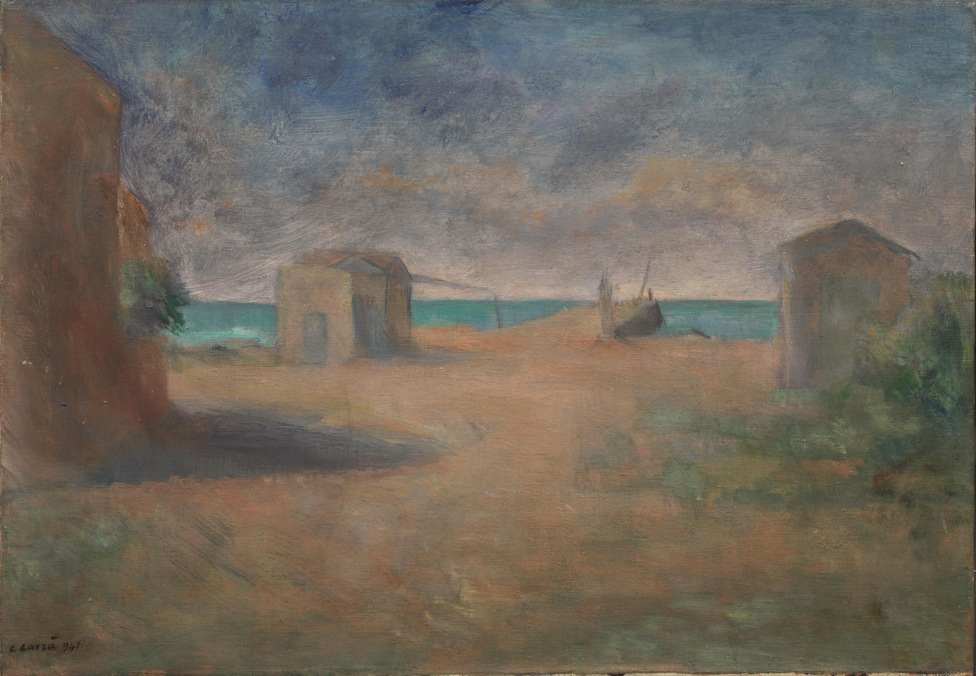 Carlo Carrà (Quargnento 1881 - Milano 1966) CAPANNI IN RIVA AL MARE...