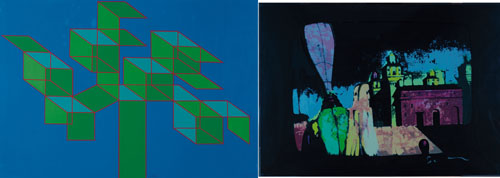 AUTORI VARI Mario Schifano, televisore serigrafia su carta applicata su masonite cm. 63x90, firma in basso a destra, esemplare 20/150, entro teca in plexiglass. Achille Perilli, Kontakte 1975 serigrafia su carta applicata su masonite cm.66x96, firma e anno in basso a destra, titolo in basso al centro, esemplare III/VI, entro teca in plexiglass.