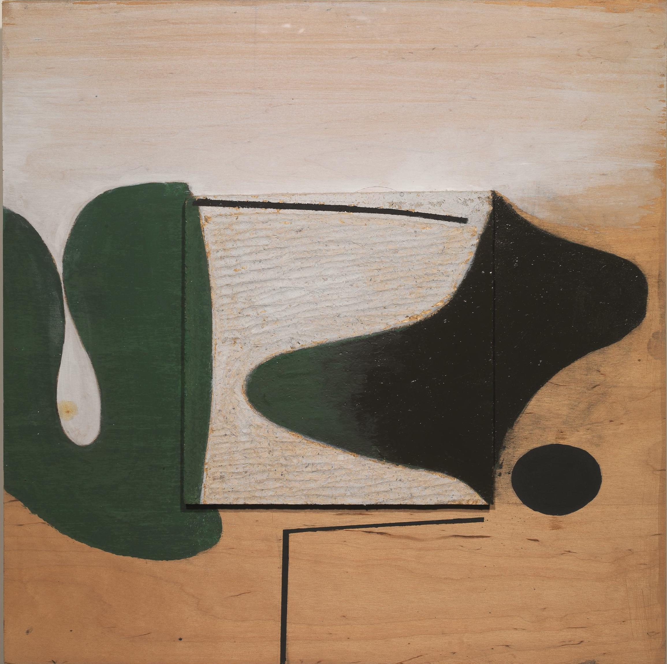gouache, olio, assemblage su tavola, cm 39x38 entro struttura di cm 7 6 x7 5,5