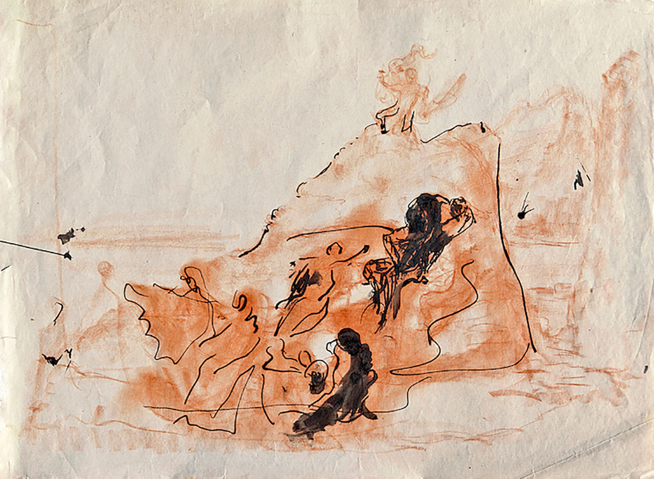 Salvatore Fancello Dorgali 1916 - Bregu Rapit 1941 Senza titolo, seconda metà degli anni Trenta Inchiostro e sanguigna su carta, 25.2x35.5 cm Provenienza: già Collezione Luca Crippa, Seregno; collezione privata