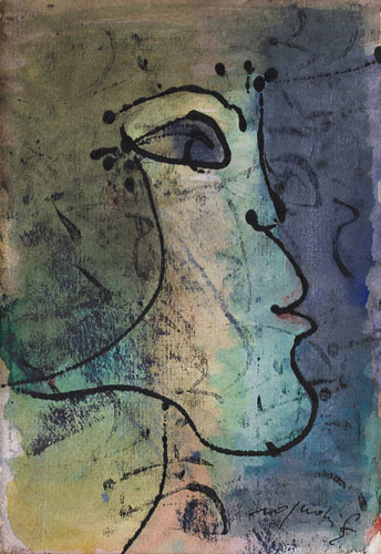 FRANCO ROGNONI Milano 20/09/1913 - Milano 11/03/1999 Profilo tecnica mista su carta applicata su tela cm. 25x17, firma in basso a destra, etichetta della Arte Verona dal 18-22 ottobre 2007 al retro, dichiarazione d'autenticità della moglie Mariuccia Rognoni Noè su foto.