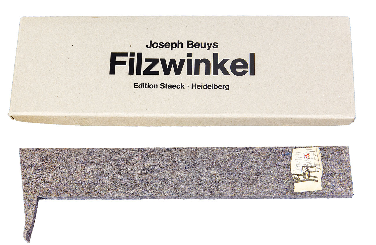 Joseph Beuys Krefeld 1921 – Düsseldorf 1986 Filzwinkel, 1985 Oggetto in feltro, 36x10,5x1 cm Edizioni: 80 + X, firmate e numerate Bibliografia: Joseph Beuys, Die Multiples 1965 - 1986, Edition Schellman, München-New York im Schirmer/Mosel Verlag, Monaco di Baviera 1997, n. 536, p. 395, illustrato a colori