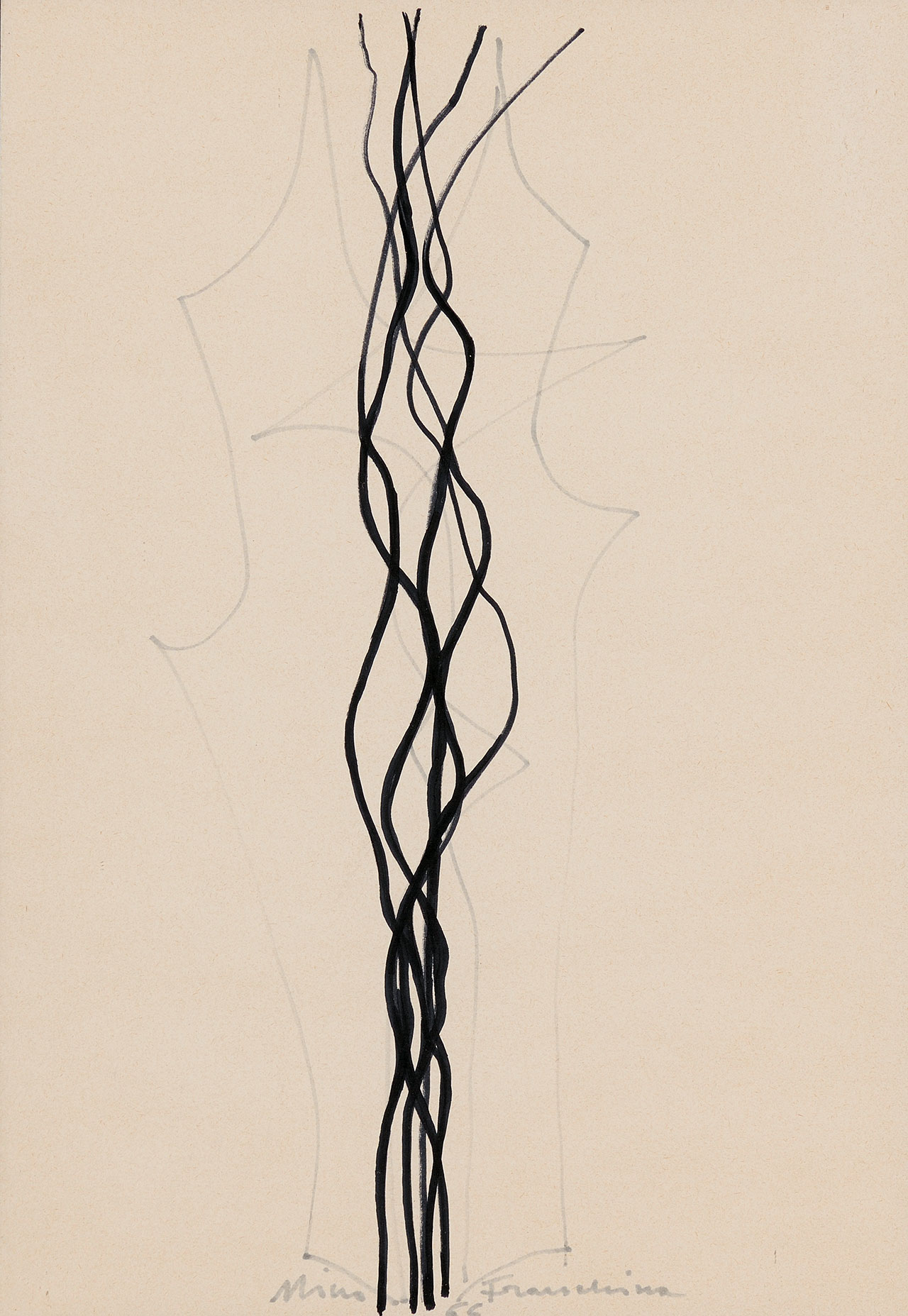 Nino Franchina Palmanova 1912 - Rom/Roma 1987 Senza titolo, 1966 Pennarello su carta, 33,5x23,5 cm Firmato e datato in basso al centro: “Nino Franchina 66” Provenienza: già collezione Piero Luigi Siena, Bolzano; collezione privata