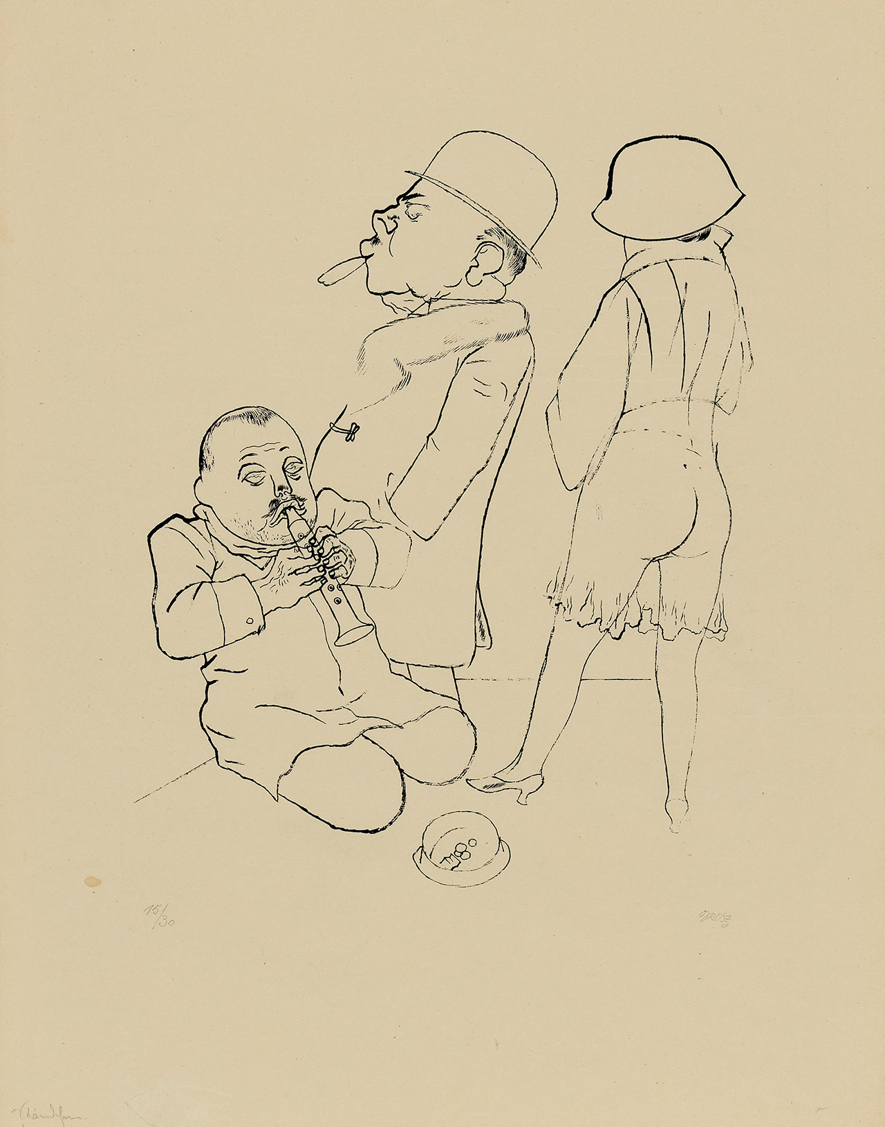 George Grosz Berlin/Berlino 1893 - 1953 Serenata, 1928 Acquaforte, 57,5x47 cm Edizione: n. 15/30 Firmata in basso a destra: “Grosz” Numerata in basso a sinistra: “15/30” Al retro: Etichetta dell’Esposizione “Selezione d’arte Europea”, Livorno 1958 Provenienza: già collezione Piero Luigi Siena, Bolzano; collezione privata Esposizioni: Livorno, Casa Comunale della Cultura, 1958 Bibliografia: Selezione d’arte Europea, cat. della mostra, Casa Comunale della Cultura, Livorno, 15-29 maggio 1958, n. 49