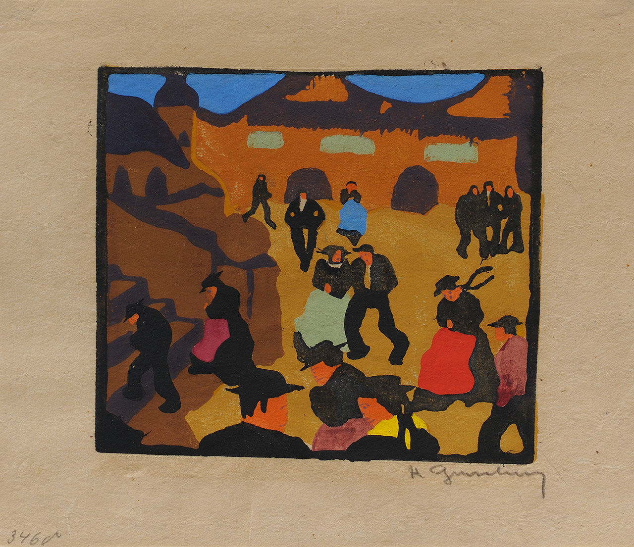 Herbert Gurschner Innsbruck 1901 - London/Londra 1975 Ingresso della chiesa Xilografia a colori, 12x13,5 cm Firmata in basso a destra: “H Gurschner” Provenienza: collezione privata