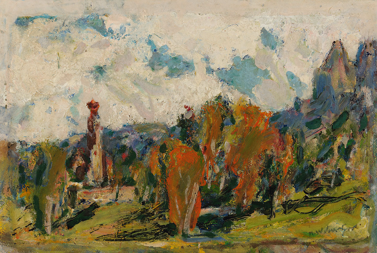 Hans Josef Weber-Tyrol Schwaz 1874 - Meran/Merano 1957 San Costantino allo Sciliar, 1956 Olio su cartone, 50x75 cm Firmato in basso a destra: “H. Weber-Tyrol” Al retro: “Gedächtnisausstellung Schloss Gandegg Eppan 26.9-31.10.1987” Provenienza: collezione privata Esposizioni: Bolzano, Ex-Dominikanerkirche, 1958; Appiano, Schloss Gandegg,1987 Bibliografia: Hans Weber-Tyrol: 1874-1957, cat. della mostra commemorativa per il 30esimo anniversario della morte, Schloss Gandegg, 26 settembre-31 ottobre 1987, Gemeinde Eppan, Appiano 1987