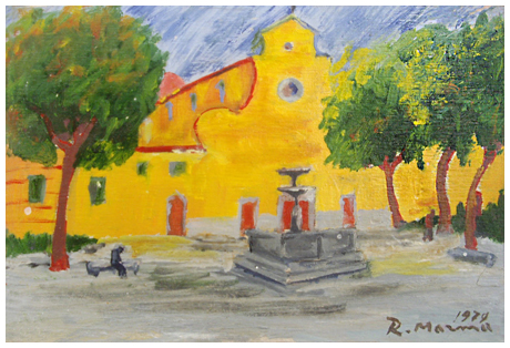 RODOLFO MARMA Firenze 1923 – 1998 Firenze, Piazza S. Spirito 1979 Olio su tavola 10 x 14,8. Data e firma in b. a d.; sul verso località, firma e titolo.