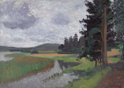 UGO VITTORE BARTOLINI Firenze 1906 - Milano 11/02/1975 Paesaggio fluviale, 1953 olio su tela cm. 50x70, firma e anno in basso a destra.