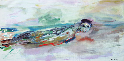 ERNESTO TRECCANI Milano 26/08/1920 - Milano 27/11/2009 Anna pesce, 1990 acrilici su tela cm. 30x60, firma in basso a destra, titolo, firma e anno al retro, opera registrata presso l'Archivio del Comitato per la tutela dell'opera di Ernesto Treccani al numero 000752 come da dichiarazione allegata.