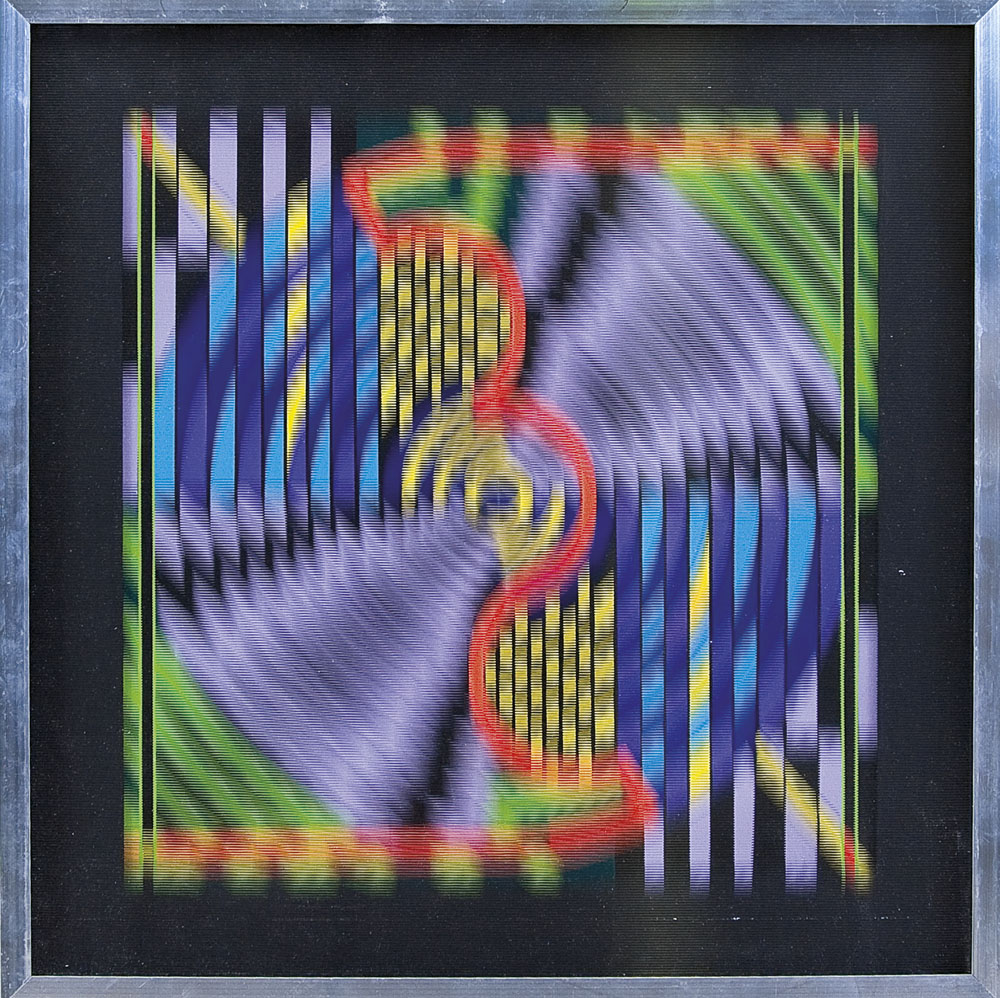 tecnica mista su cartoncino con copertura in plexiglass zigrinato a linee orizzontali cm. 35x30, firma, titolo, anno, etichetta e timbri dell'artista al retro, dichiarazione d'autenticità dell'artista e timbro della Anti: galleria d'Arte (Mestre-VE) su certificato allegato.