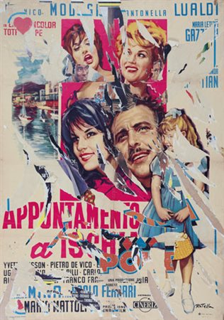 MIMMO ROTELLA Catanzaro 07/10/1918 - Milano 08/01/2006 L'appuntamento, 2003 decollage su tela cm. 139x100, firma in basso a destra, titolo, firma e anno al retro, dichiarazione d'autenticità dell'artista su foto.
