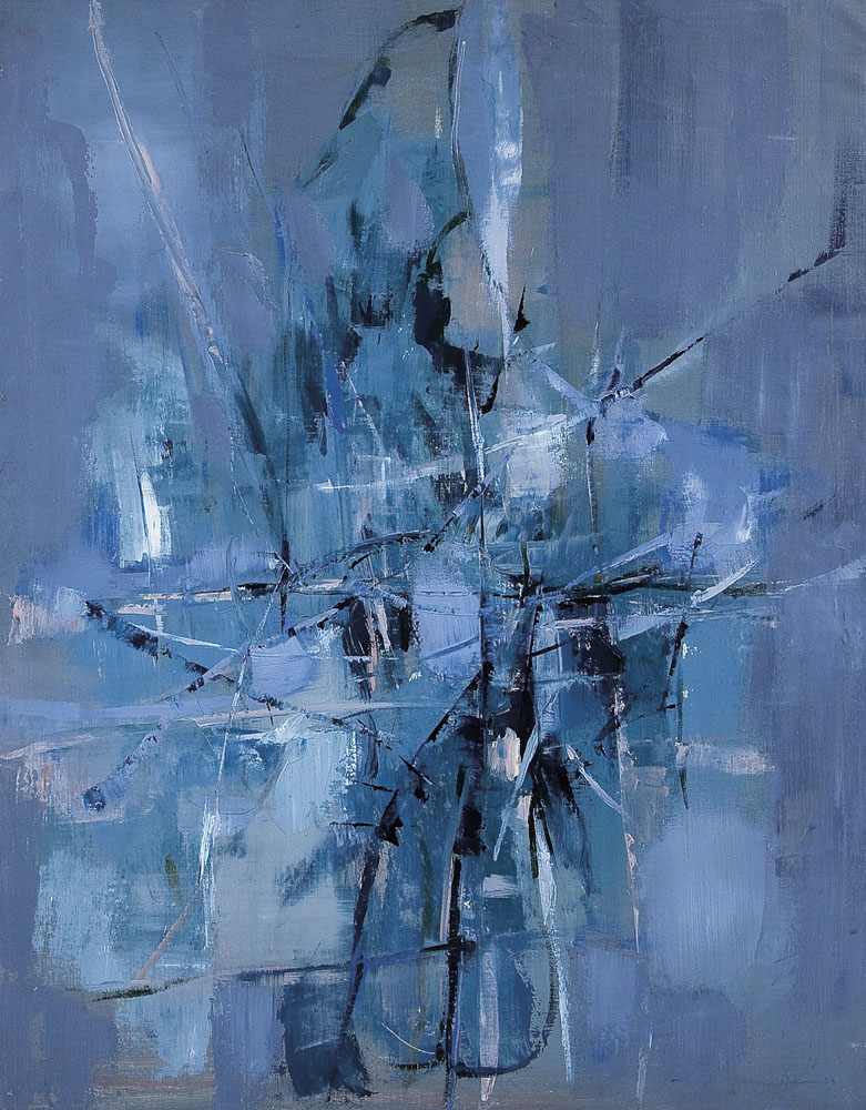 olio su tela cm. 92x73, firma e anno in basso a destra, titolo e anno al retro, dichiarazione d'autenticità dell'artista su foto, opera registrata presso l'Archivio Giuseppe Ajmone come da dichiarazione su foto.