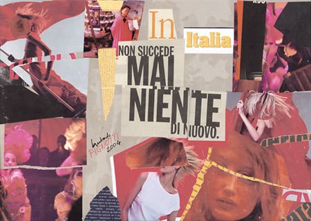 LAMBERTO PIGNOTTI Firenze 1926 Mai niente di nuovo in Italia, 2004 collage su cartoncino cm. 50x70, firma e anno al centro, pubblicato sul catalogo della mostra "Lamberto Pignotti, dove siamo? 1963/2007", tenutasi nel novembre/dicembre 2007 presso lo Studio d'Arte Aurelio Stefanini (FI), pagina 50, pubblicato sulla rivista "Arte Contemporanea", Edizioni Artecom (Grottaferrata-RM) numero 9 del novembre/dicembre 2007, pagina 58