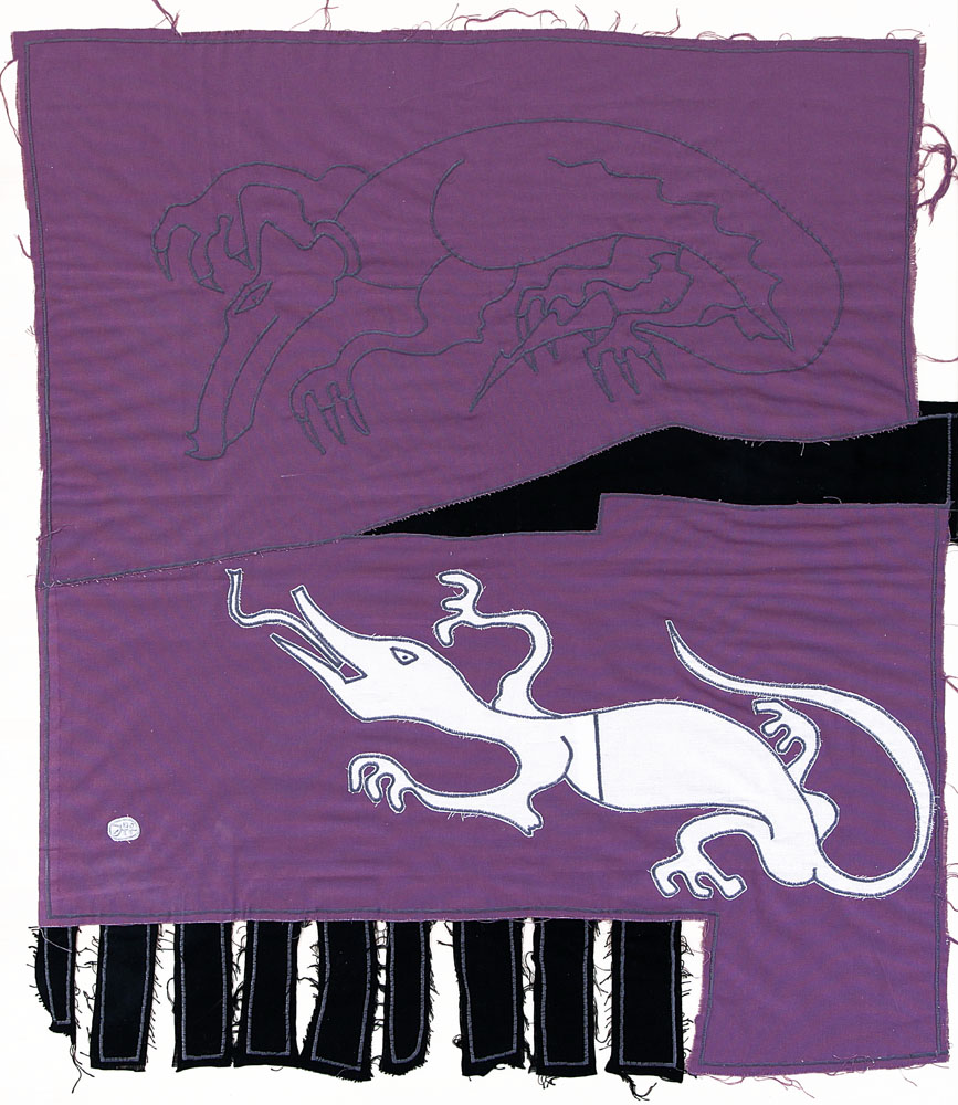 stoffa rituale ricamata cm. 87x77, opera non firmata, dichiarazione d'autenticità e archivio dell'artista su scheda anagrafica dell'opera allegata.