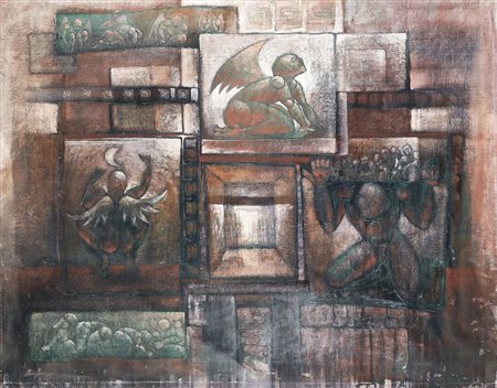 tecnica mista su tela cm. 160x210, firma e anno in basso a sinistra, dichiarazione d'autenticità dell'artista su foto, opera priva di telaio e cornice.