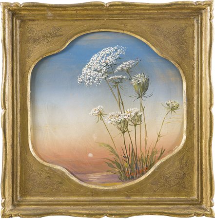 olio su pannello in fibra di legno preparata per la pittura cm. 35x33, firma in basso a destra, firma e titolo al retro.