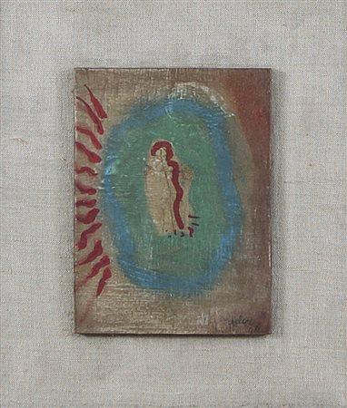 tecnica mista su masonite applicata su tela riportata su tavola cm. 25x20, firma e anno in basso a destra, firma, titolo, anno e timbro della Galleria Gio Arte (Mestre-VE) al retro.