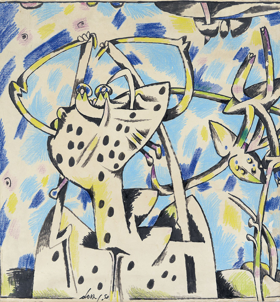 tecnica mista su carta intelata cm. 71x66,5; firma e anno in basso al centro, opera registrata presso l'Archivio Gianni Dova, Catalogo Generale n° G849 come da dichiarazione della Galleria d'Arte Cafiso su foto.