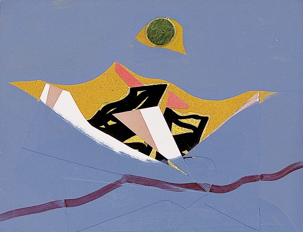 tecnica mista e collage su faesite cm. 38x47,5; firma in basso al centro, titolo al retro.