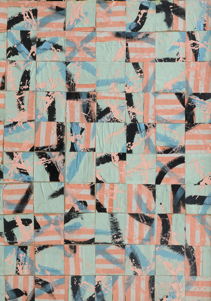 tecnica mista e collage di carte e tele su cartone cm. 102,5x72,5; firma e anno al retro, dichiarazione d'autenticità della sorella Lyda Bianchi su foto.