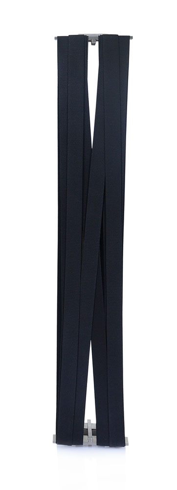 scultura da parete in alluminio e cinghie in nailon cm. 110x20x12,5; firma e anno al retro, timbro e firma per provenienza della Galleria Directionarts (TN) su foto.