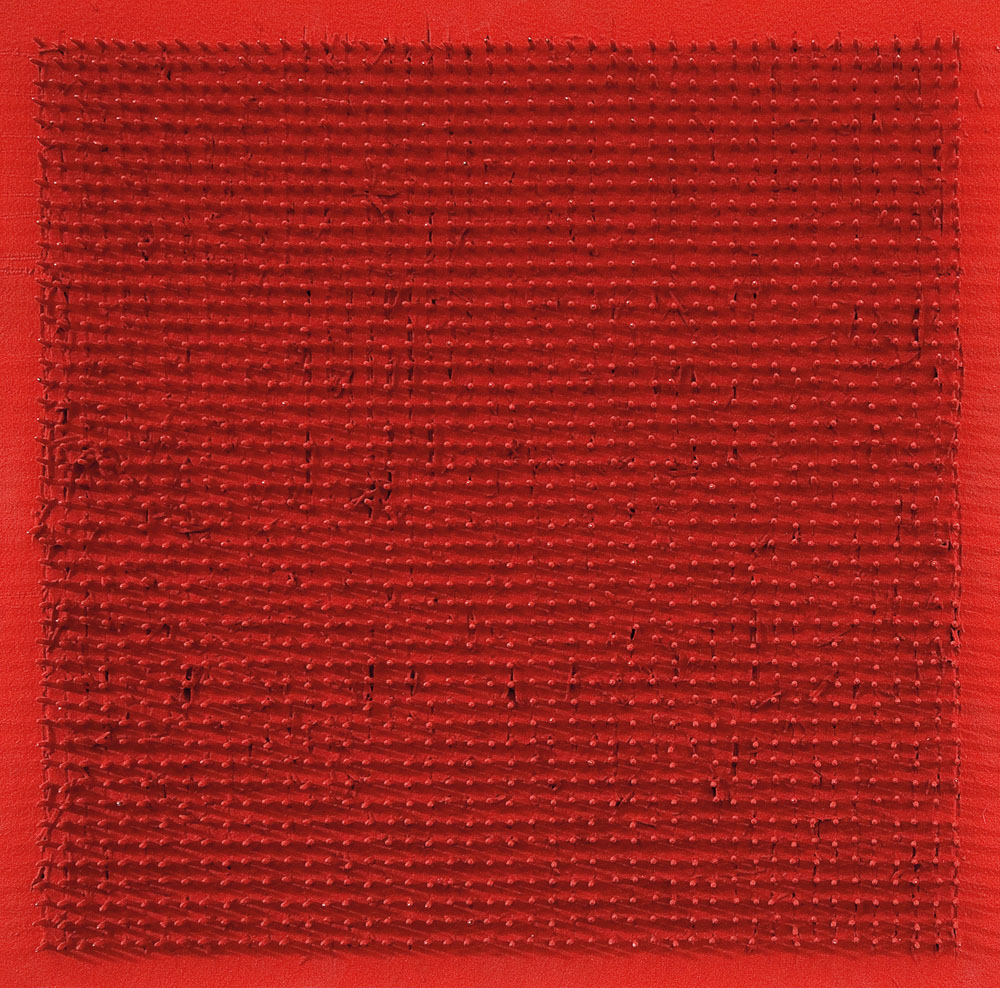 acrilico e chiodi su tavola cm. 50x50, firma e anno al retro, dichiarazione d'autenticità dell'artista su foto e archivio delle opere di Bernard Aubertin su foto.