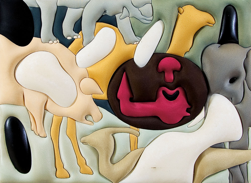 legno, gommapiuma e lycra cm. 52x72x7, firma, titolo, anno e timbro della Galleria Rosini (Riccione) al retro, dichiarazione d'autenticità dell'artista su foto.