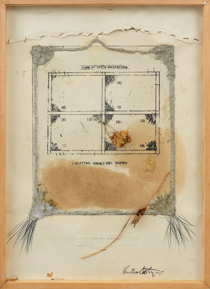 tecnica mista e collage su cartone cm. 70x50x4, firma e anno in basso a destra, dichiarazione d'autenticità a cura di Caterina Gualco su foto.