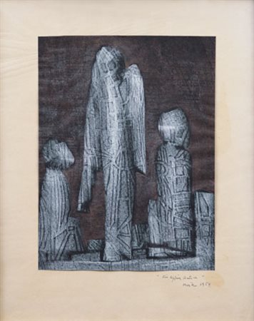 MIRKO (BASALDELLA) Udine 28/09/1910 - Cambridge(USA) 24/09/1969 Via Appia Antica, 1954 tecnica mista su carta cm. 24x17,5; applicata su cartoncino 34x27; firma e anno in basso a destra, firma, titolo e anno in basso a destra sul cartoncino.
