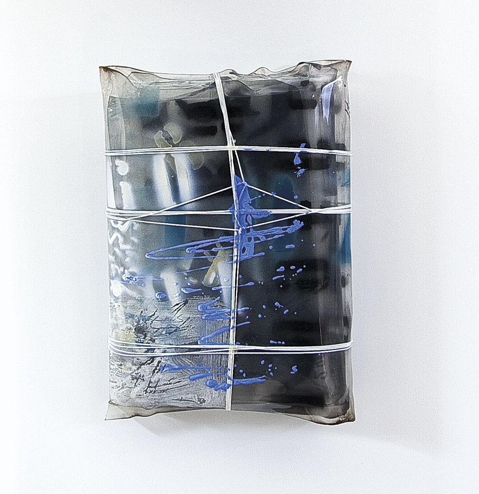 informal tridimensional painting cm. 52x52, entro teca in plexiglass cm. 70x70x10, firma, anno, tecnica e timbro dell'artista al retro, etichetta "Claudio Viviani, certificazione di autenticità" su foto.