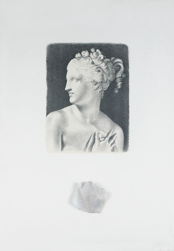 OMAR GALLIANI Montecchio Emilia (Re) 30/10/1954 Senza titolo litografia e collage su carta cm. 100x70, pezzo unico, firma in basso a destra, etichetta della Galleria Cesarea (Ge) al retro.