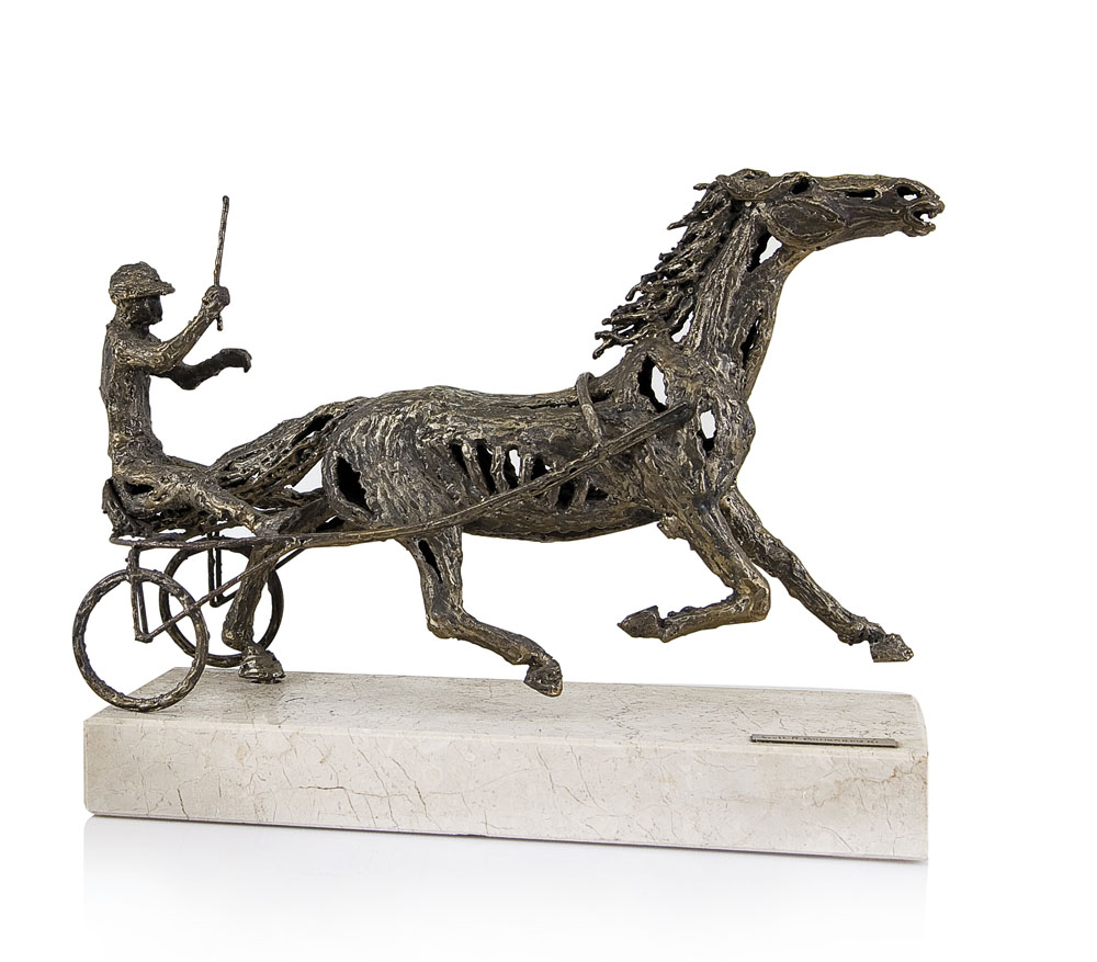scultura in acciaio elettrosaldato cm. 33x53x18; poggiante su base in marmo (totale cm 50x20x40), pezzo unico, firma su etichetta posta alla base del marmo, attestato d'autenticità firmato dall'artista allegato.