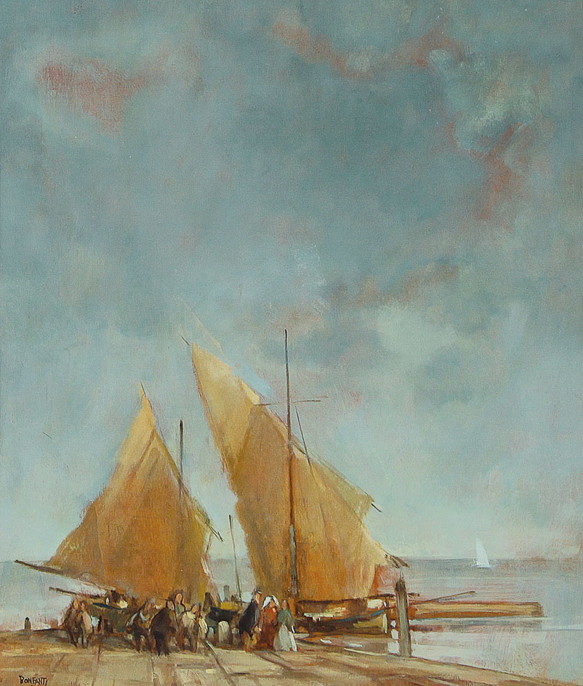BONFANTI ARTURO Bergamo 24/05/1905 - Bergamo 1978Barcheolio su tavola cm....