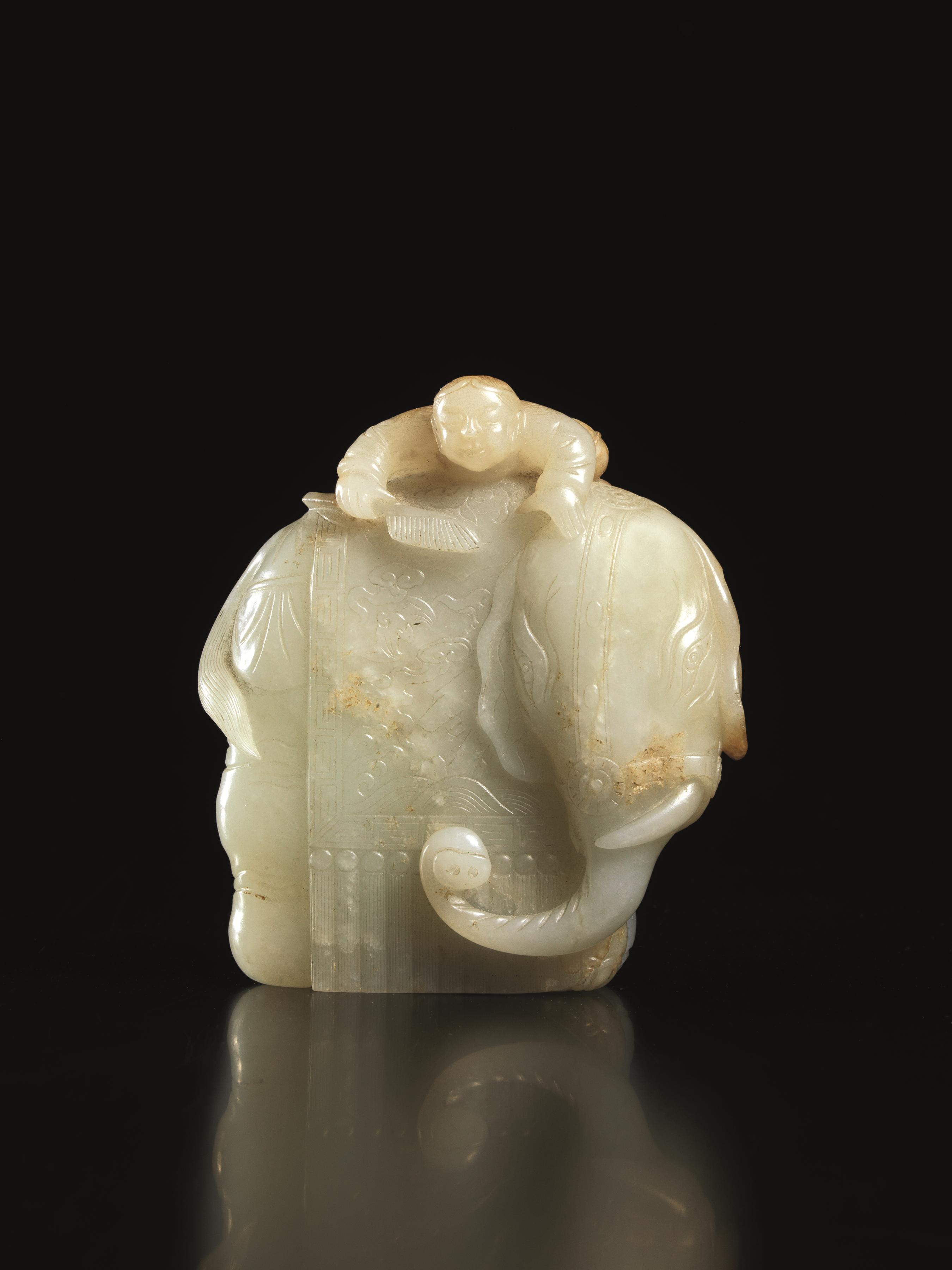 A white jade carving, with a boy washing an elephant, China, 18th century, Qianlong period